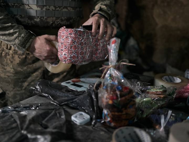 Військові 220 батальйону 126 бригади ТРО морської піхоти відправила дронами паски побратимам, які перебувають біля села Кринки Херсонської області.