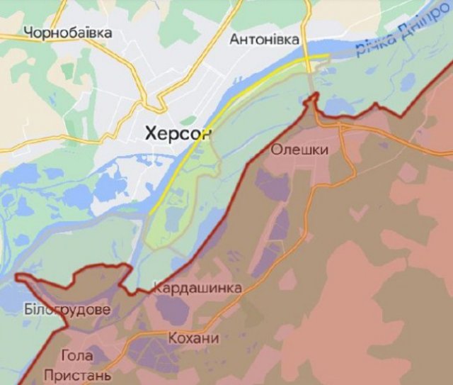 «Українці контролюють район Дач на лівому березі, а також розширюють свій плацдарм через річку Конка на захід від Олешок. Натомість російські війська посилили свою присутність на острові Потьомкін поблизу Білогрудового».