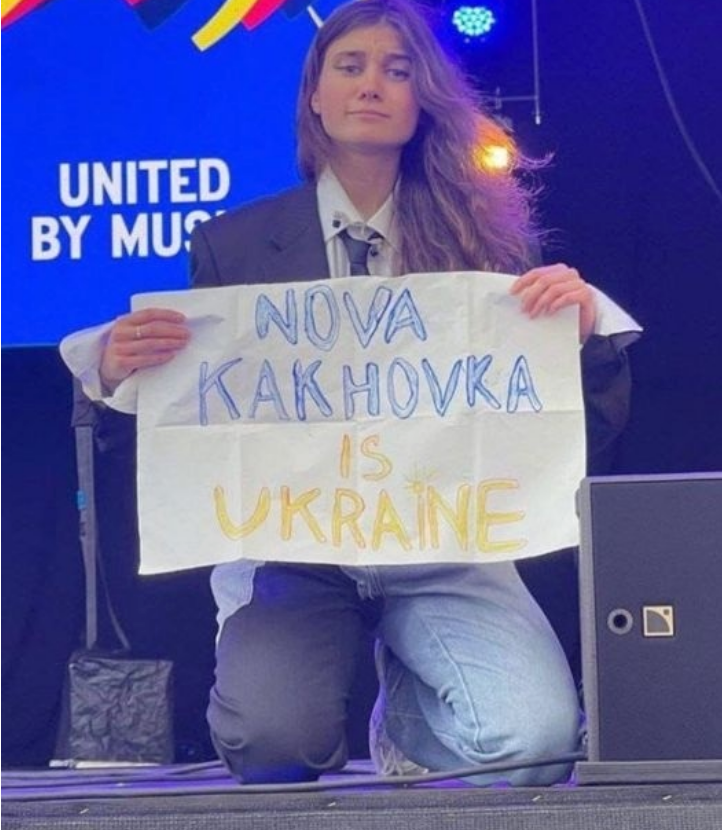 Нагадаємо, у травні на Євробаченння в Ліверпулі співачка розгорнула плакат "Нова Каховка - це Україна".